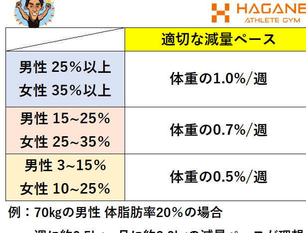 - 筋肉量の保護: 適切な減量速度は、筋肉を維持し、基礎代謝を高く保つ助けになります。