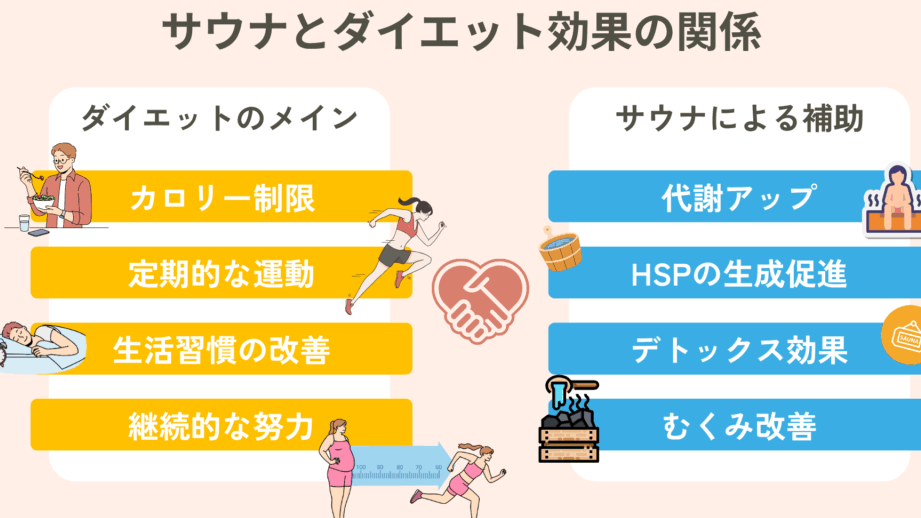 これらの要素が組み合わさることで、サウナはダイエットのサポート役として機能します。