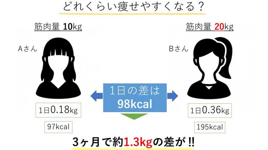 - 筋肉量が増えることで基礎代謝も向上。