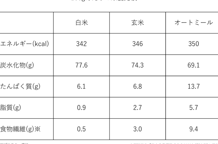 オートミールと玄米の比較
