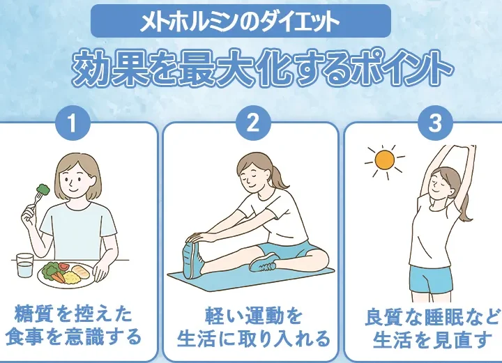 - 体重管理: メトホルミンは、食欲を抑制する効果があります。